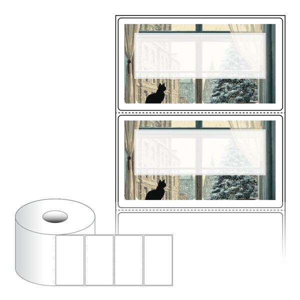 출력용 롤타입 스티커 디자인 라벨지, 규격코드: RS10056, 디자인코드: DA1494(오후엔 눈 그리고, 고양이), 100 x 56.267 (mm) , 지관: 40mm