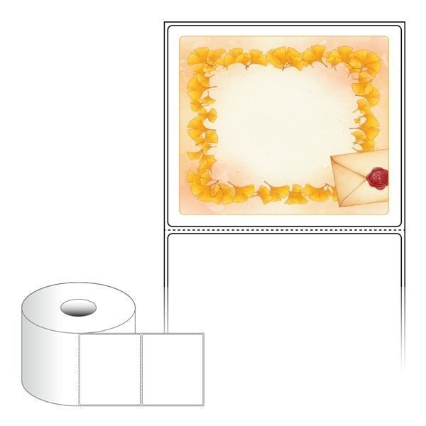 출력용 롤타입 스티커 디자인 라벨지, 규격코드: RS10086, 디자인코드: DA1426(은행잎 편지), 100 x 85.9 (mm) , 지관: 40mm