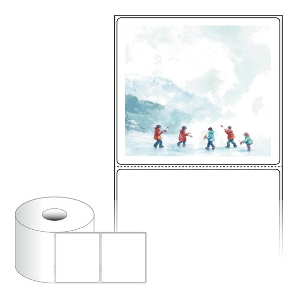출력용 롤타입 스티커 디자인 라벨지, 규격코드: RS10090, 디자인코드: DA1522(추워도 즐거운 아이들의 겨울), 100 x 90.133 (mm) , 지관: 40mm