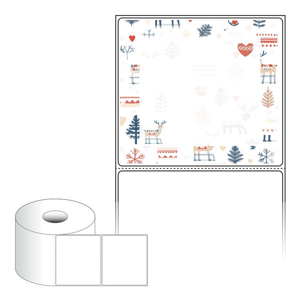 출력용 롤타입 스티커 디자인 라벨지, 규격코드: RS10090, 디자인코드: DA1526(겨울숲 여행 함께해요), 100 x 90.133 (mm) , 지관: 40mm