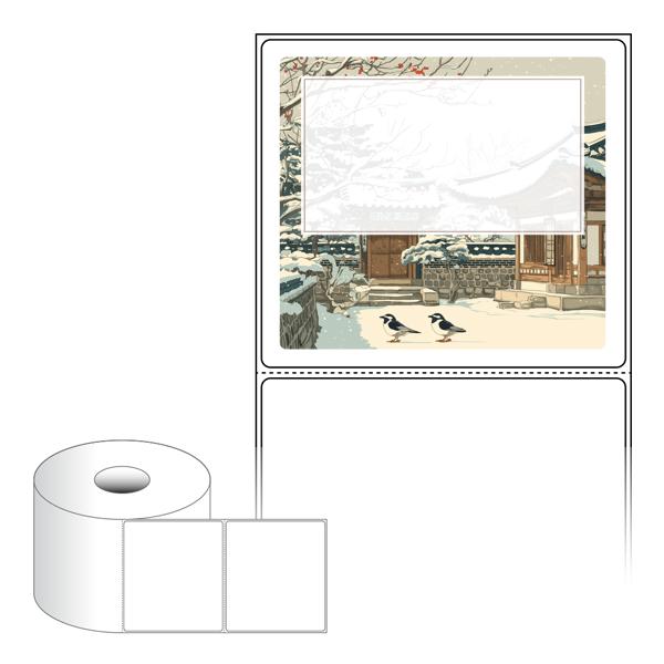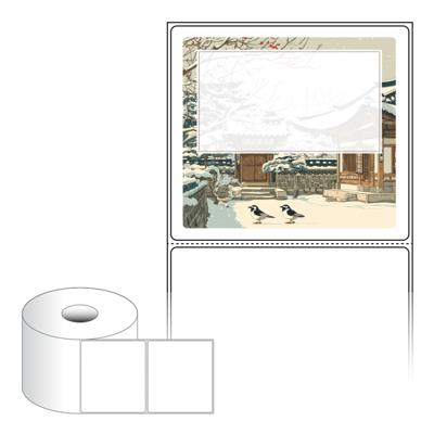 출력용 롤타입 스티커 디자인 라벨지, 규격코드: RS10090, 디자인코드: DA1546(눈내린 설날 아침), 100 x 90.133 (mm) , 지관: 40mm