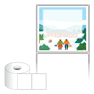 출력용 롤타입 스티커 디자인 라벨지, 규격코드: RS10090, 디자인코드: DA1569(설레는 설날의 아침), 100 x 90.133 (mm) , 지관: 40mm