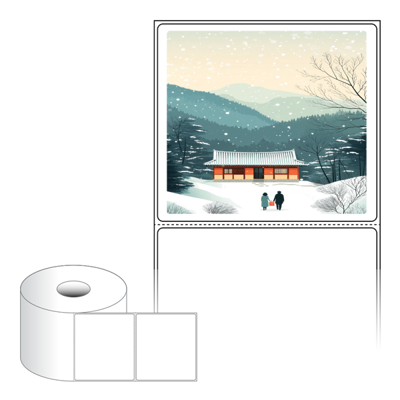 출력용 롤타입 스티커 디자인 라벨지, 규격코드: RS10090, 디자인코드: DA1577(귀향, 눈내리는 설날), 100 x 90.133 (mm) , 지관: 40mm