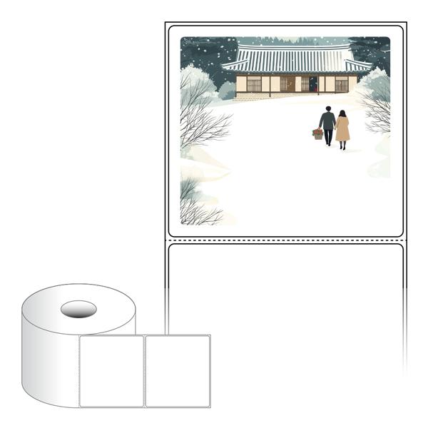 출력용 롤타입 스티커 디자인 라벨지, 규격코드: RS10090, 디자인코드: DA1580(눈내린 귀향의 따뜻한 길), 100 x 90.133 (mm) , 지관: 40mm