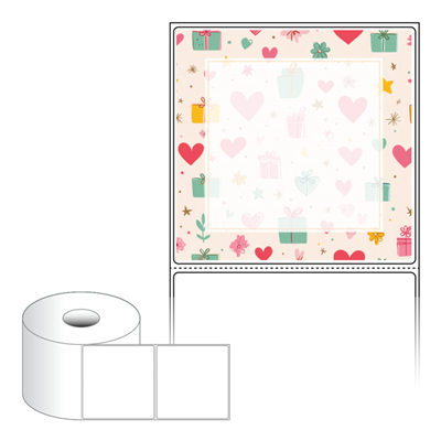 출력용 롤타입 스티커 디자인 라벨지, 규격코드: RS10098, 디자인코드: DA1393(선물 하트 포장지), 100 x 98 (mm) , 지관: 40mm