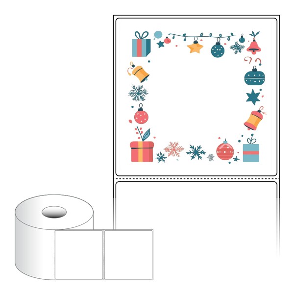 출력용 롤타입 스티커 디자인 라벨지, 규격코드: RS10098, 디자인코드: DA1458(크리스마스를 장식해요), 100 x 98 (mm) , 지관: 40mm