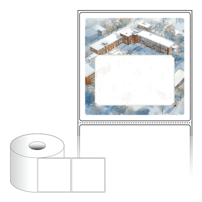 출력용 롤타입 스티커 디자인 라벨지, 규격코드: RS10098, 디자인코드: DA1535(겨울방학 학교에서 러브레터), 100 x 98 (mm) , 지관: 40mm