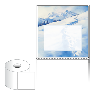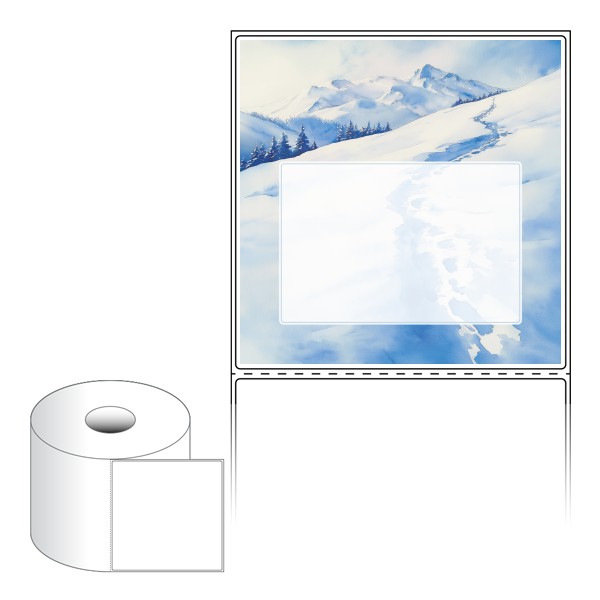 출력용 롤타입 스티커 디자인 라벨지, 규격코드: RS110111, 디자인코드: DA1490(겨울산에서 보내는 편지 1), 110 x 111 (mm) , 지관: 40mm