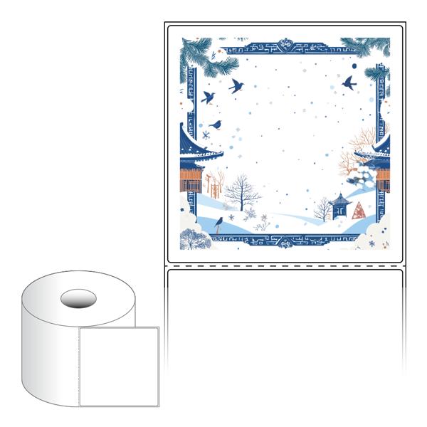 출력용 롤타입 스티커 디자인 라벨지, 규격코드: RS110111, 디자인코드: DA1514(겨울 프레임, 설날), 110 x 111 (mm) , 지관: 40mm