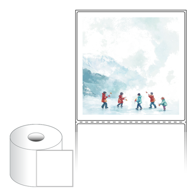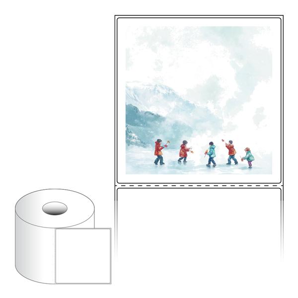 출력용 롤타입 스티커 디자인 라벨지, 규격코드: RS110111, 디자인코드: DA1522(추워도 즐거운 아이들의 겨울), 110 x 111 (mm) , 지관: 40mm