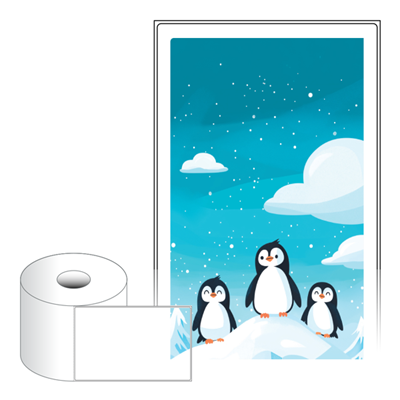 출력용 롤타입 스티커 디자인 라벨지, 규격코드: RS110175, 디자인코드: DA1468(반가워요. 귀여운 펭귄 친구들~), 110 x 174.8 (mm) , 지관: 40mm
