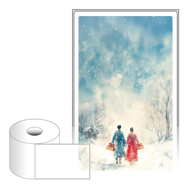 출력용 롤타입 스티커 디자인 라벨지, 규격코드: RS110175, 디자인코드: DA1520(설레는 맘을 담은 설날), 110 x 174.8 (mm) , 지관: 40mm