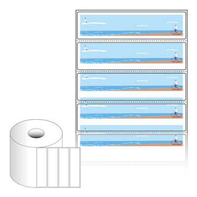 출력용 롤타입 스티커 디자인 라벨지, 규격코드: RS12030, 디자인코드: DA1591(하이킹, 상쾌한 바닷가), 120 x 30 (mm) , 지관: 40mm