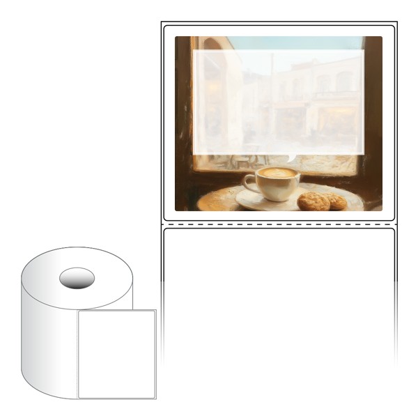 출력용 롤타입 스티커 디자인 라벨지, 규격코드: RS130110, 디자인코드: DA1479(레트로 감성 카페에서), 130 x 110 (mm) , 지관: 40mm