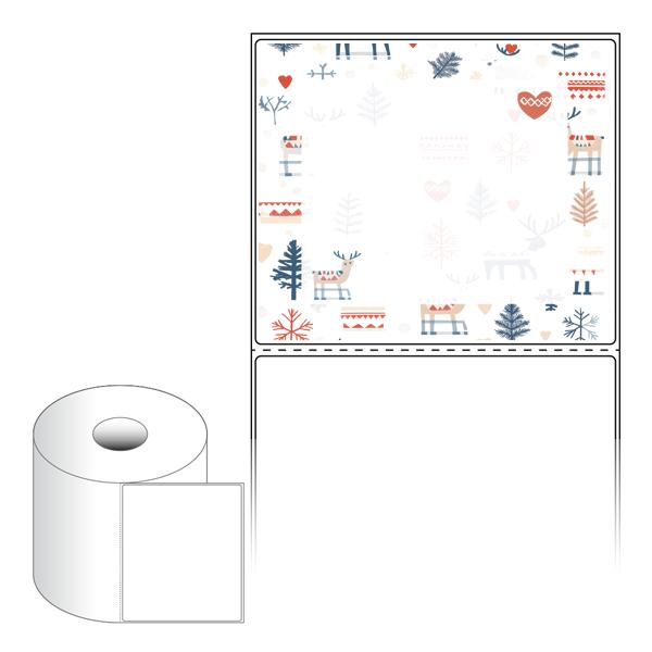출력용 롤타입 스티커 디자인 라벨지, 규격코드: RS130110, 디자인코드: DA1526(겨울숲 여행 함께해요), 130 x 110 (mm) , 지관: 40mm