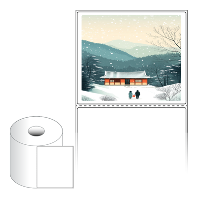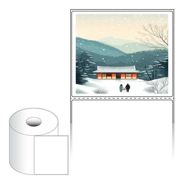 출력용 롤타입 스티커 디자인 라벨지, 규격코드: RS130110, 디자인코드: DA1577(귀향, 눈내리는 설날), 130 x 110 (mm) , 지관: 40mm