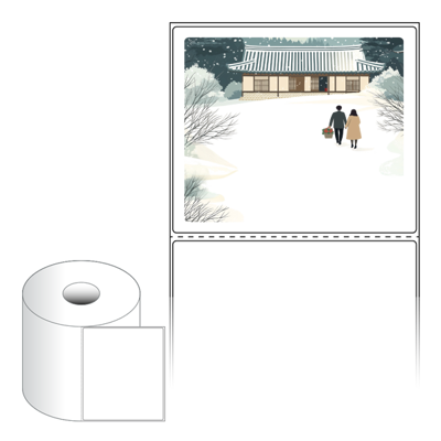 출력용 롤타입 스티커 디자인 라벨지, 규격코드: RS130110, 디자인코드: DA1580(눈내린 귀향의 따뜻한 길), 130 x 110 (mm) , 지관: 40mm