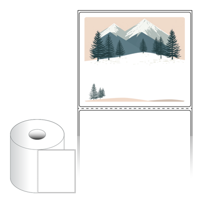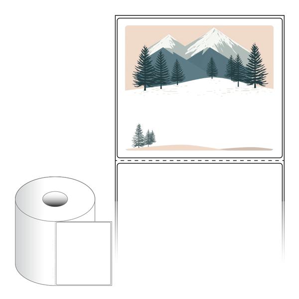 출력용 롤타입 스티커 디자인 라벨지, 규격코드: RS130110, 디자인코드: DA1582(저 잘지내요~ 겨울산에 인사), 130 x 110 (mm) , 지관: 40mm