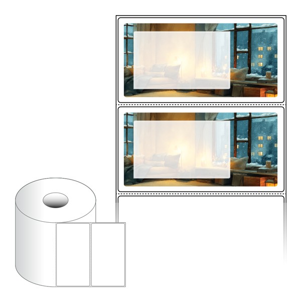 출력용 롤타입 스티커 디자인 라벨지, 규격코드: RS13067, 디자인코드: DA1461(아늑한 실내, 겨울의 창가에서), 130 x 66.5 (mm) , 지관: 40mm