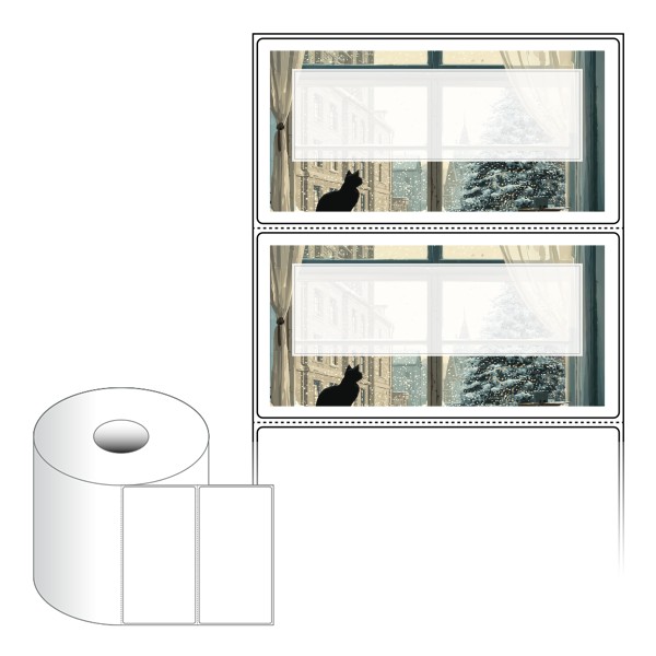 출력용 롤타입 스티커 디자인 라벨지, 규격코드: RS13067, 디자인코드: DA1494(오후엔 눈 그리고, 고양이), 130 x 66.5 (mm) , 지관: 40mm