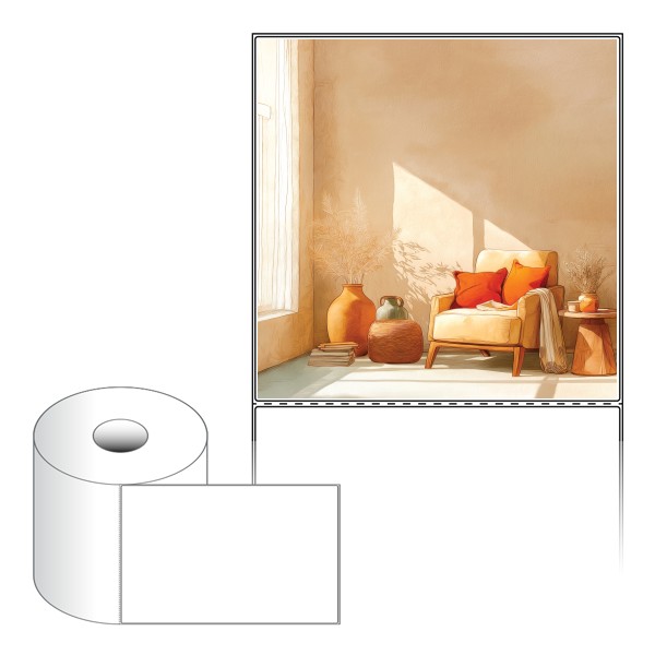 출력용 롤타입 스티커 디자인 라벨지, 규격코드: RS200200, 디자인코드: DA1436(아늑한 어느날 오후의 풍경), 200 x 200 (mm) , 지관: 40mm