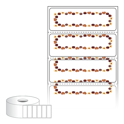 텍스트, 이미지, 도형, 바코드 등을 쉽게 출력 할 수 있으며 엑셀파일 등의 연동도 가능합니다. 라벨 모양대로 이미 칼선이 있기 때문에 출력 후 바로 떼어서 사용 하시면 됩니다.