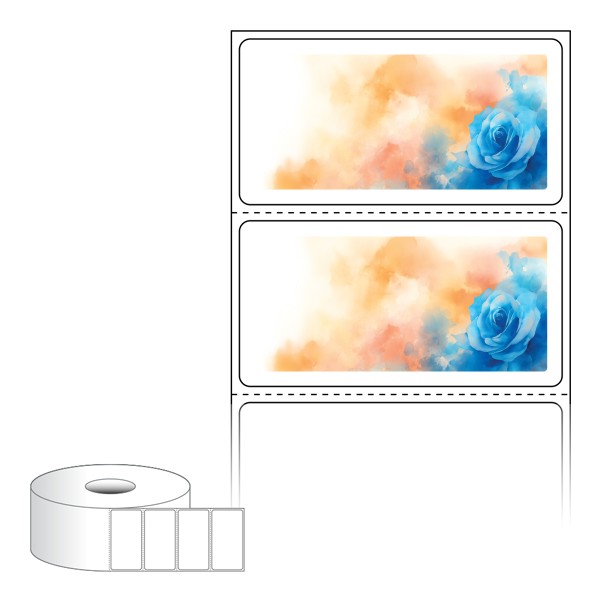 출력용 롤타입 스티커 디자인 라벨지, 규격코드: RS6031, 디자인코드: DA1410(감사의 파란 장미), 60 x 30.867 (mm) , 지관: 40mm