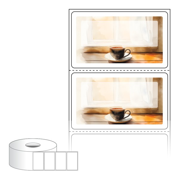출력용 롤타입 스티커 디자인 라벨지, 규격코드: RS6035, 디자인코드: DA1424(따뜻한 차 한잔 하세요), 60 x 35.1 (mm) , 지관: 40mm