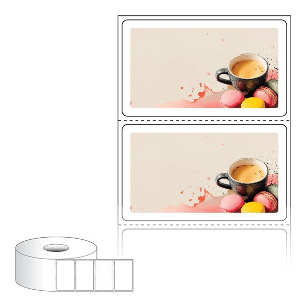 출력용 롤타입 스티커 디자인 라벨지, 규격코드: RS6035, 디자인코드: DA1445(차와 함께하는 즐거운 힐링타임), 60 x 35.1 (mm) , 지관: 40mm