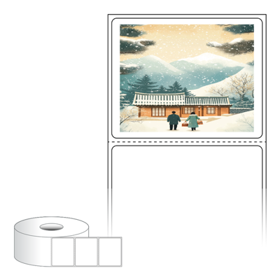 출력용 롤타입 스티커 디자인 라벨지, 규격코드: RS6048, 디자인코드: DA1575(설, 따뜻한 귀향), 60 x 47.8 (mm) , 지관: 40mm
