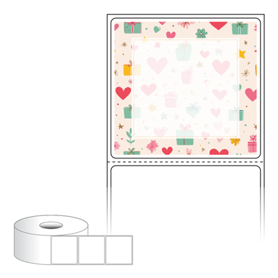 출력용 롤타입 스티커 디자인 라벨지, 규격코드: RS6056, 디자인코드: DA1393(선물 하트 포장지), 60 x 56.267 (mm) , 지관: 40mm