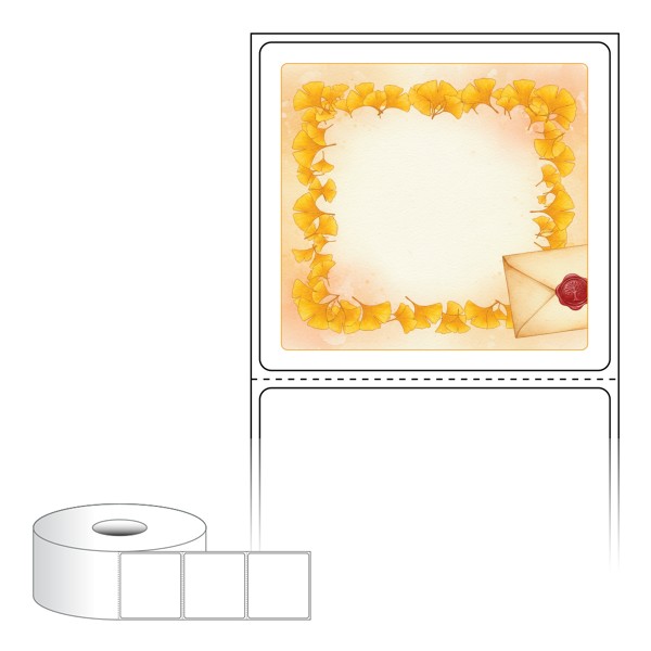 출력용 롤타입 스티커 디자인 라벨지, 규격코드: RS6056, 디자인코드: DA1426(은행잎 편지), 60 x 56.267 (mm) , 지관: 40mm