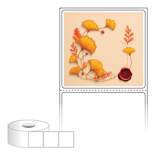 출력용 롤타입 스티커 디자인 라벨지, 규격코드: RS6056, 디자인코드: DA1437(은행잎 메모), 60 x 56.267 (mm) , 지관: 40mm