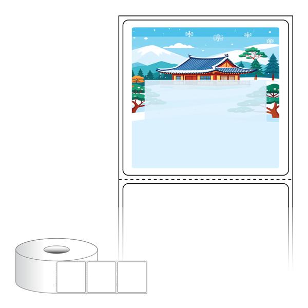 출력용 롤타입 스티커 디자인 라벨지, 규격코드: RS6056, 디자인코드: DA1567(설날의 아침1), 60 x 56.267 (mm) , 지관: 40mm