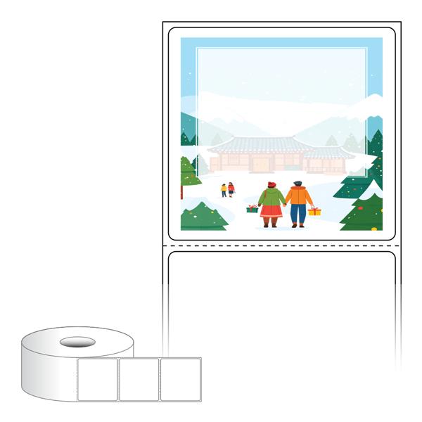 출력용 롤타입 스티커 디자인 라벨지, 규격코드: RS6056, 디자인코드: DA1569(설레는 설날의 아침), 60 x 56.267 (mm) , 지관: 40mm