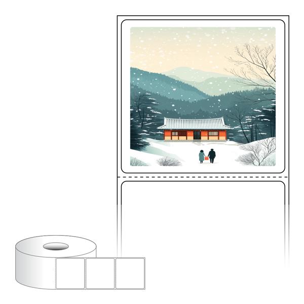 출력용 롤타입 스티커 디자인 라벨지, 규격코드: RS6056, 디자인코드: DA1577(귀향, 눈내리는 설날), 60 x 56.267 (mm) , 지관: 40mm