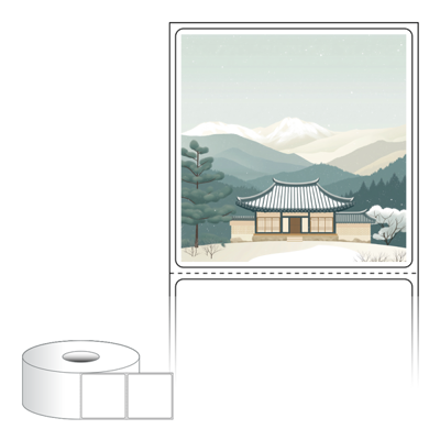출력용 롤타입 스티커 디자인 라벨지, 규격코드: RS6061, 디자인코드: DA1578(고요한 설날의 아침), 60 x 60.5 (mm) , 지관: 40mm
