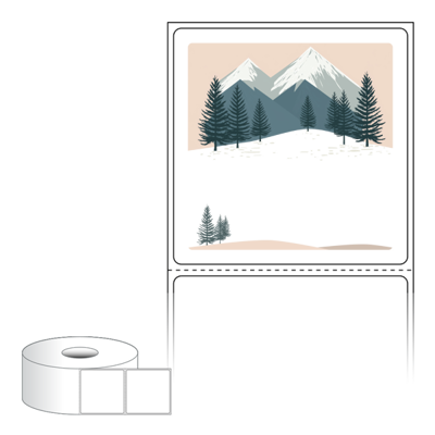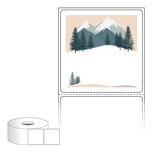출력용 롤타입 스티커 디자인 라벨지, 규격코드: RS6061, 디자인코드: DA1582(저 잘지내요~ 겨울산에 인사), 60 x 60.5 (mm) , 지관: 40mm