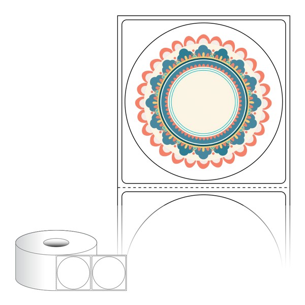 출력용 롤타입 스티커 디자인 라벨지, 규격코드: RS6464, 디자인코드: DA1418(단청 받침), Φ64 (mm) 원형 , 지관: 40mm