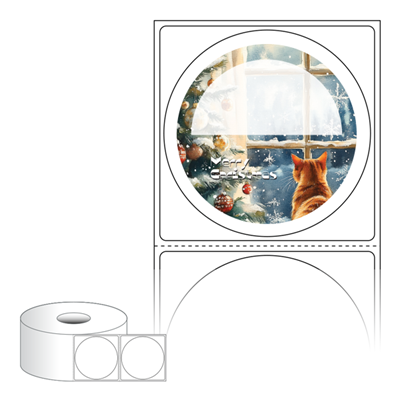 출력용 롤타입 스티커 디자인 라벨지, 규격코드: RS6464, 디자인코드: DA1496(메리크리스마스냥!), Φ64 (mm) 원형 , 지관: 40mm