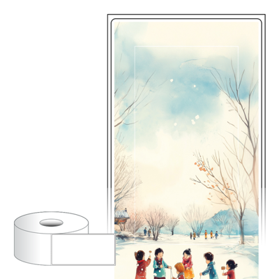 출력용 롤타입 스티커 디자인 라벨지, 규격코드: RS65136, 디자인코드: DA1523(즐거운 겨울날의 한장면), 65 x 136 (mm) , 지관: 40mm