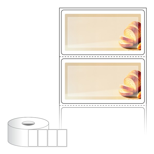 출력용 롤타입 스티커 디자인 라벨지, 규격코드: RS6535, 디자인코드: DA1450(맛있는 베이커리), 65 x 35 (mm) , 지관: 40mm