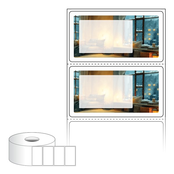 출력용 롤타입 스티커 디자인 라벨지, 규격코드: RS6535, 디자인코드: DA1461(아늑한 실내, 겨울의 창가에서), 65 x 35 (mm) , 지관: 40mm