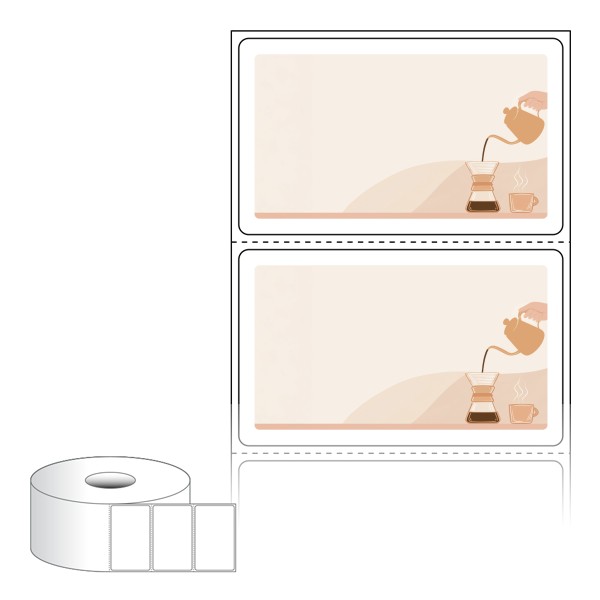 출력용 롤타입 스티커 디자인 라벨지, 규격코드: RS6539, 디자인코드: DA1413(커피와 함께 힐링타임), 65 x 39.333 (mm) , 지관: 40mm