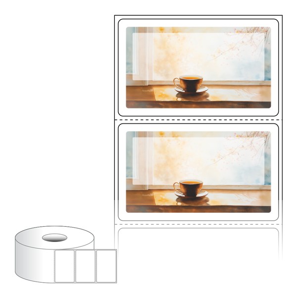 출력용 롤타입 스티커 디자인 라벨지, 규격코드: RS6539, 디자인코드: DA1425(가을날의 카페 창가에서), 65 x 39.333 (mm) , 지관: 40mm