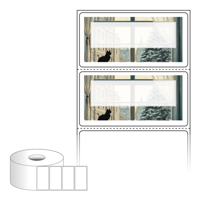 출력용 롤타입 스티커 디자인 라벨지, 규격코드: RS7035, 디자인코드: DA1494(오후엔 눈 그리고, 고양이), 70 x 35.1 (mm) , 지관: 40mm