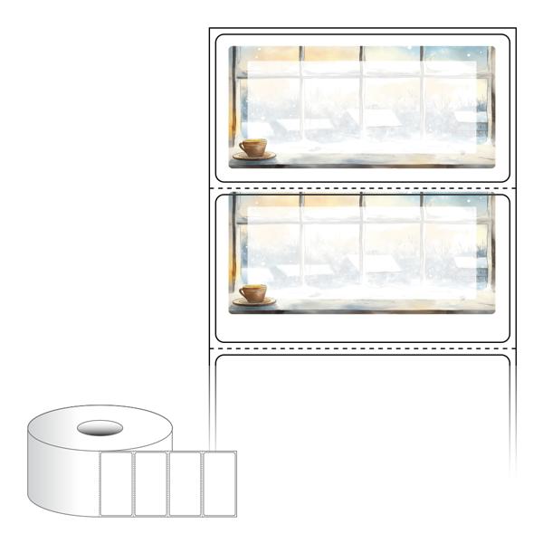 출력용 롤타입 스티커 디자인 라벨지, 규격코드: RS7035, 디자인코드: DA1510(겨울창가에서1), 70 x 35.1 (mm) , 지관: 40mm