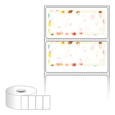 출력용 롤타입 스티커 디자인 라벨지, 규격코드: RS7035, 디자인코드: DA1655(스위트, 간식패턴), 70 x 35.1 (mm) , 지관: 40mm