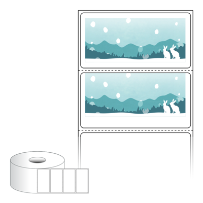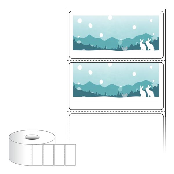 출력용 롤타입 스티커 디자인 라벨지, 규격코드: RS7035, 디자인코드: DA1716(설산 속 토끼가족), 70 x 35.1 (mm) , 지관: 40mm