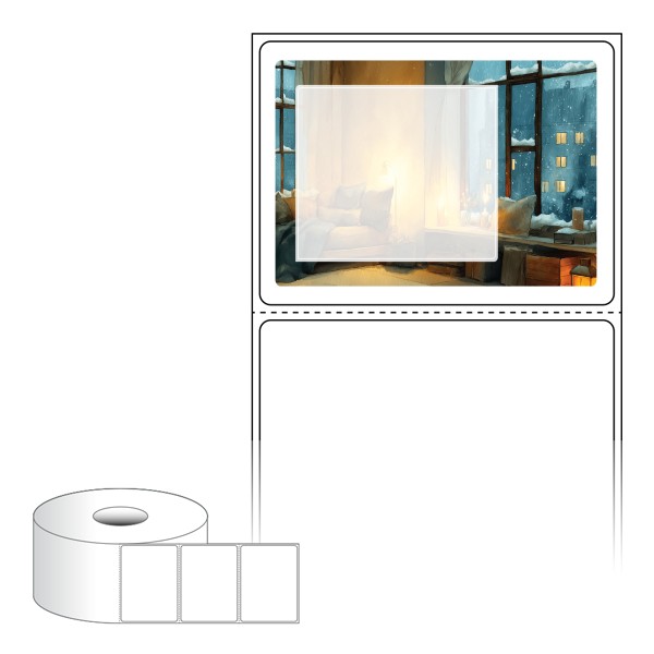 출력용 롤타입 스티커 디자인 라벨지, 규격코드: RS7052, 디자인코드: DA1461(아늑한 실내, 겨울의 창가에서), 70 x 52 (mm) , 지관: 40mm